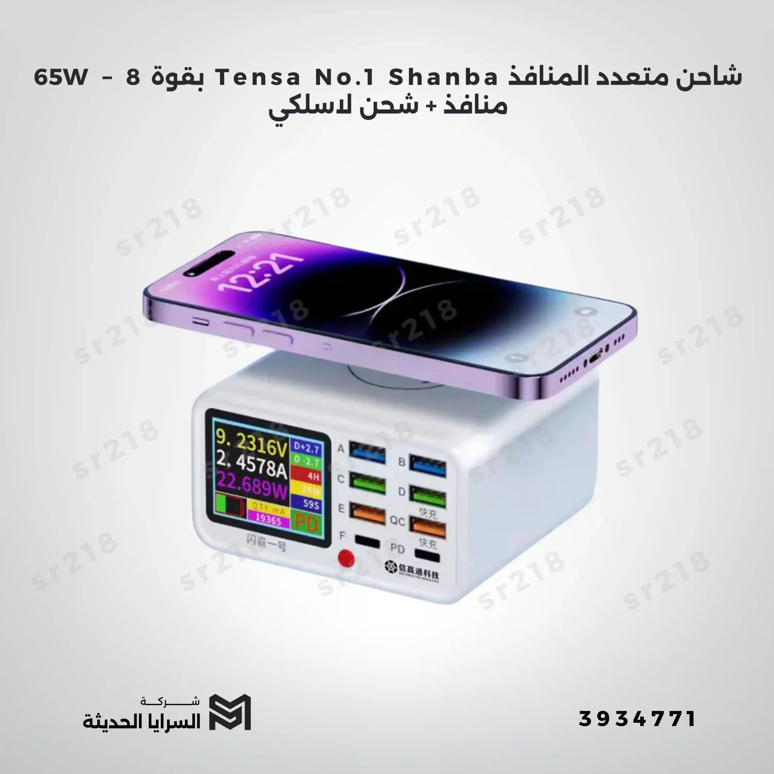 شاحن متعدد المنافذ Tensa No.1 Shanba بقوة 65W – 8 منافذ + شحن لاسلكي